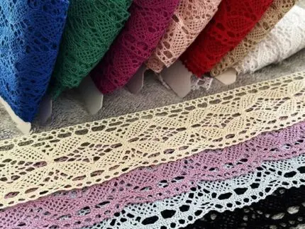 Występują koronki stabilne , elastyczne, bawełniane, akrylowe, poliestrowe i piękna szykowna gipiura. Występują w naszej ofercie w różnych wariantach kolorystycznych , różnej szerokości i wielu bardzo ciekawych wzorach.