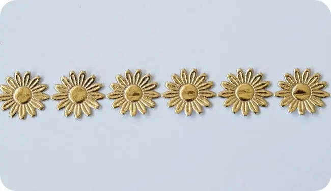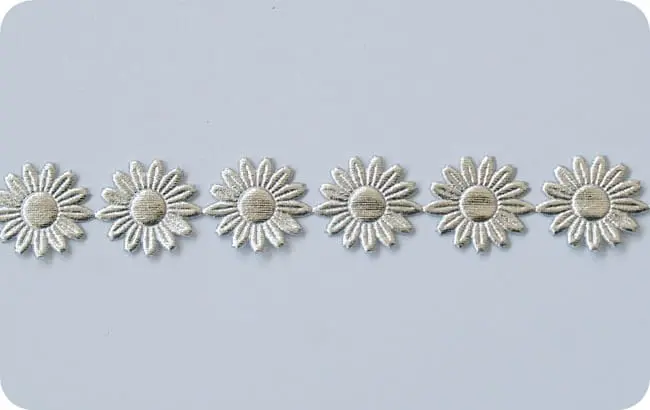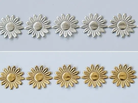 Kwiatki na taśmie w kolorze złotym i srebrnym.