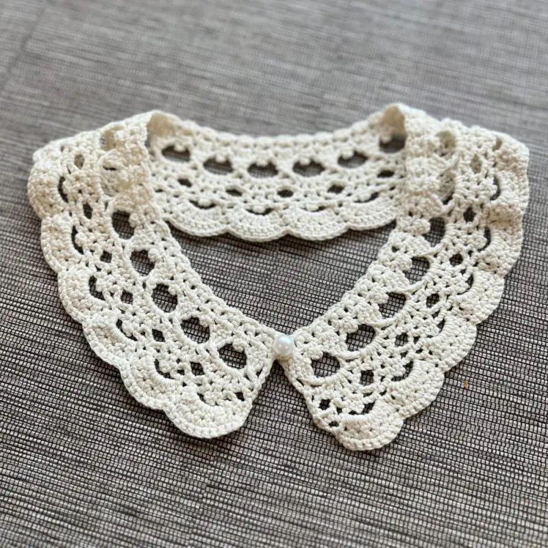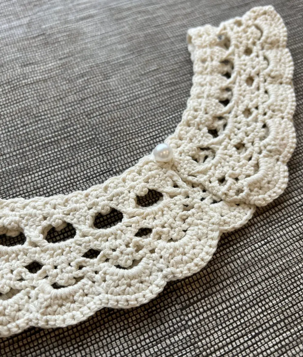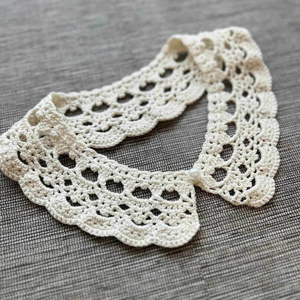 Bawełniany kołnierzyk „Amelia” wyróżnia się ręcznym wykonaniem, co nadaje mu unikatowego charakteru i podkreśla dbałość o każdy detal. Idealnie komponuje się z sukienkami, bluzkami, swetrami czy kardiganami, dodając stylizacji dziewczęcego uroku i elegancji. Może być noszony jako ozdobny element na wierzchu lub wszyty na stałe do odzieży.