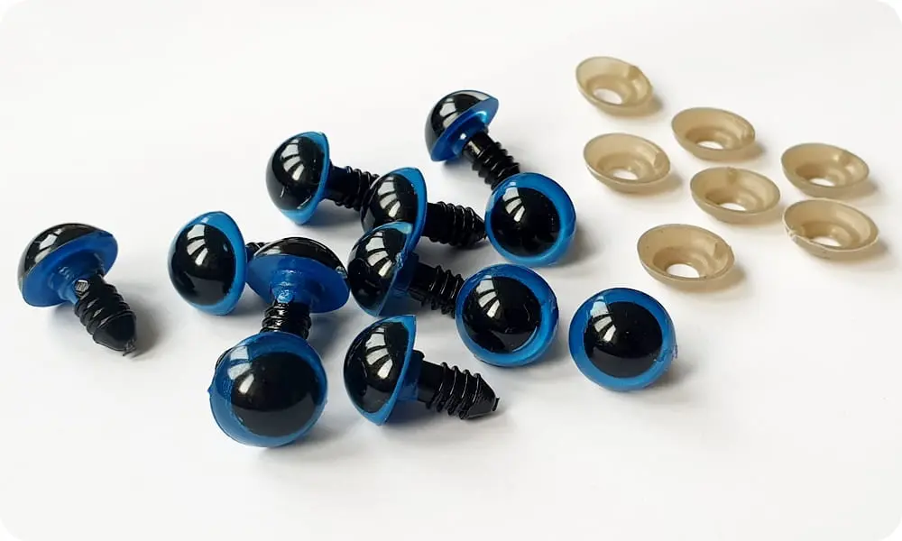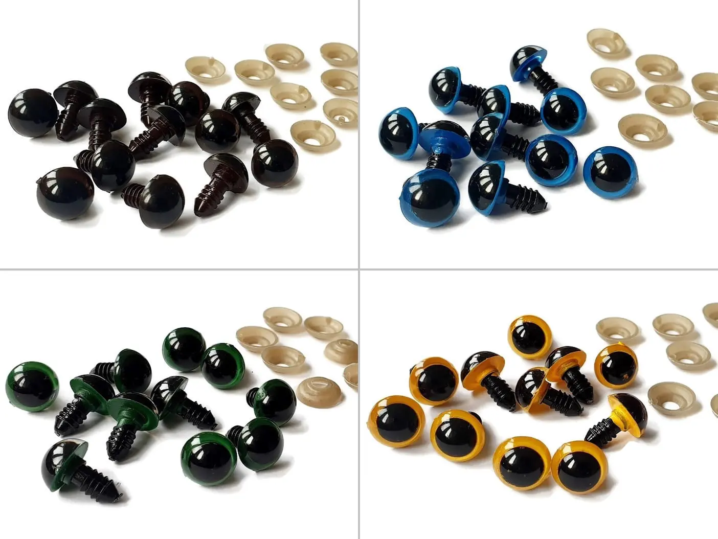 Plastikowe, bezpieczne oczka do zabawek czy ręcznie robionych maskotek. Do każdego oczka dodawany jest zacisk.