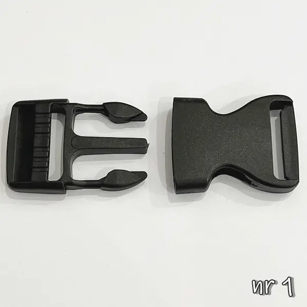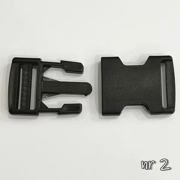 Zaciskowa klamra plastikowa w czarnym kolorze. Zapięcie często stosowane przy torbach, plecakach i paskach. Klamra plastikowa to niezbędny dodatek dla każdego, kto ceni sobie wygodę i praktyczność. Dzięki niej możesz łatwo i szybko zabezpieczyć swoje rzeczy w plecaku, zapobiegając ich wypadnięciu czy zgubieniu. Dzięki klamrze plastikowej, możesz mieć pewność, że Twoje rzeczy są bezpiecznie zabezpieczone podczas podróży czy codziennych aktywności.