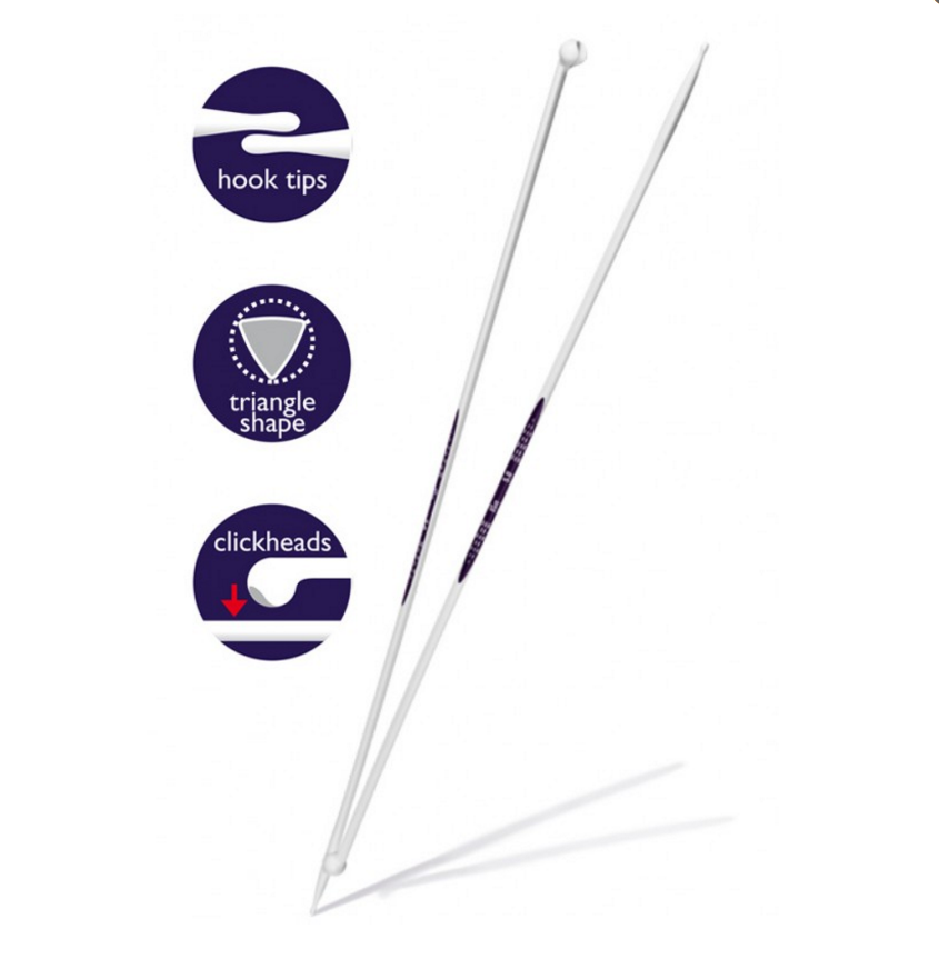 Druty proste ERGONOMICZNE PRYM to seria, która rewolucjonizuje sposób tworzenia robótek. Specjalnie wyprofilowana końcówka drutów ułatwia nabieranie oczek bez rozszczepiania nitki, co znacząco przyspiesza i uprzyjemnia pracę. Wykonane ze specjalnie opracowanego tworzywa antypoślizgowego, gwarantują pewny chwyt i komfort użytkowania. Druty Prym Ergonomics są lekkie, ciche, sprężyste i odporne na trwałe zniekształcenia, co zapewnia ich długotrwałe użytkowanie. Ich kształt płynnie przechodzi od trójkątnego do okrągłego, dzięki czemu zapobiegają wyciąganiu i odkształcaniu oczek. Główka typu click, czyli pomysłowo zaprojektowana końcówka, łączy dwa druty w parę, co ułatwia trzymanie i prowadzenie ściegu.
