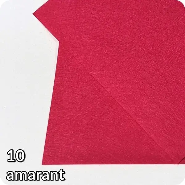 – Dostępne kolory: biały, écru, łosoś, brzoskwinia, żółty, słoneczny żółty, pomarańcz, czerwony, róż, amarant, fiolet, niebieski, chaber, granat, zielony, ciemnozielony, jasny brąz, czarny