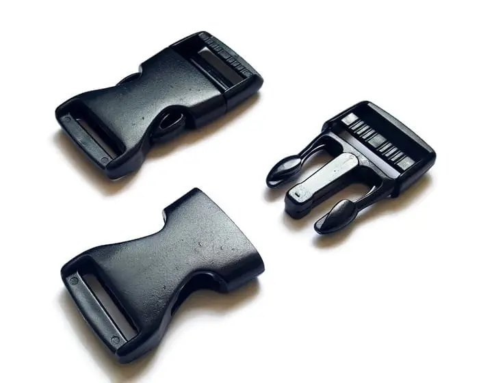Zaciskowa klamra plastikowa. Zapięcie często stosowane przy torbach, plecakach i paskach.