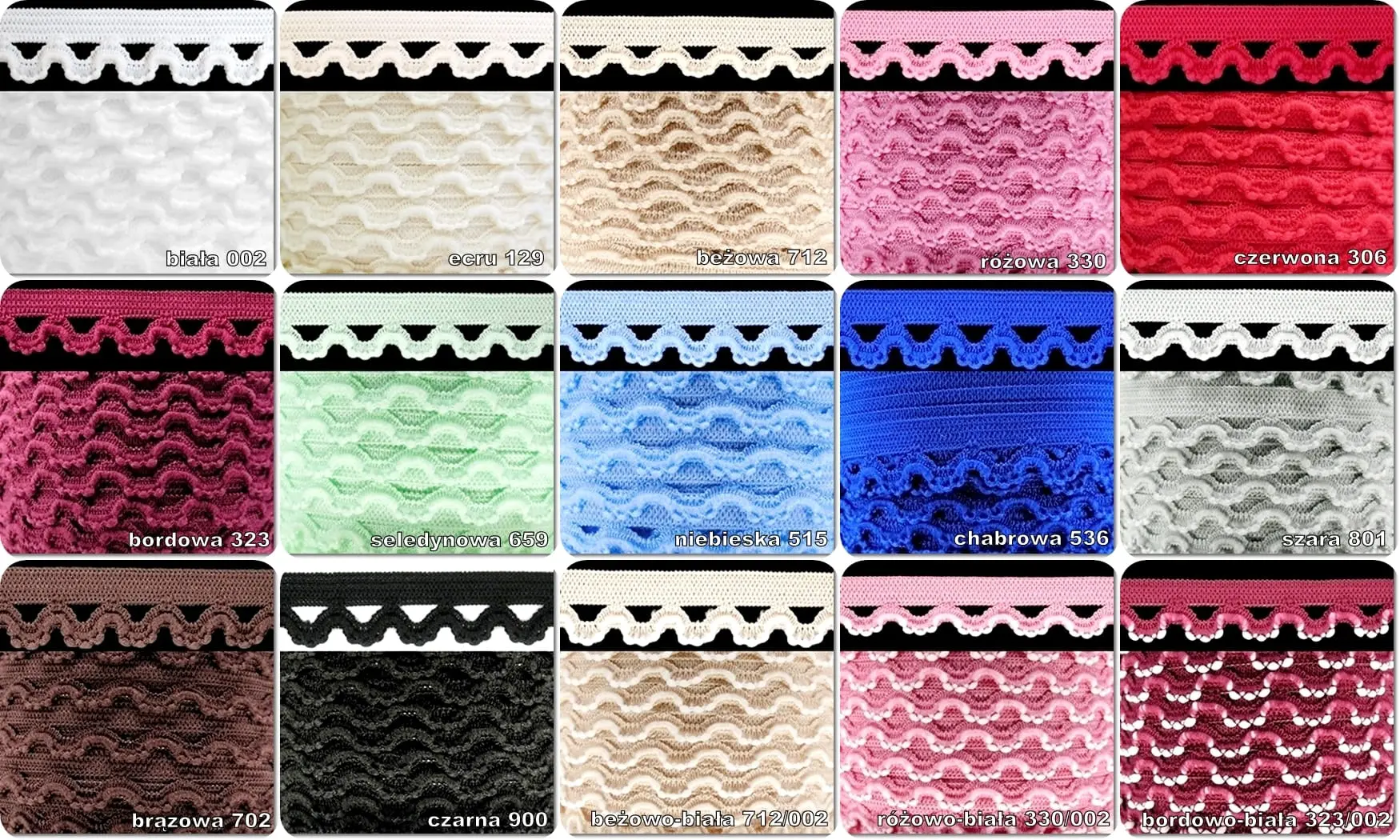 Strona główna » Pasmanteria on-line » GUMY KRAWIECKIE » gumy ozdobne » Guma ozdobna z FALBANKĄ gumokoronka opakowanie 25m