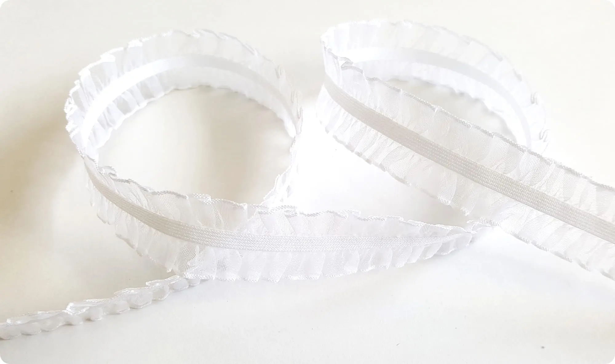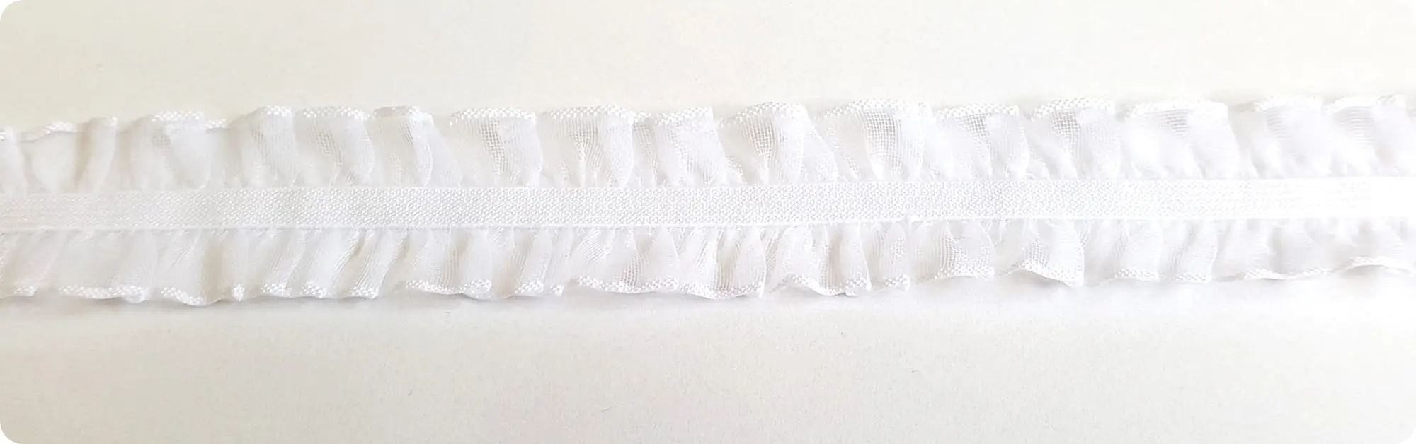 Gumka z szyfonową falbanką idealnie nadaje się do wykańczania brzegów sukienek, rękawów, ozdabiania odzieży i bielizny.
