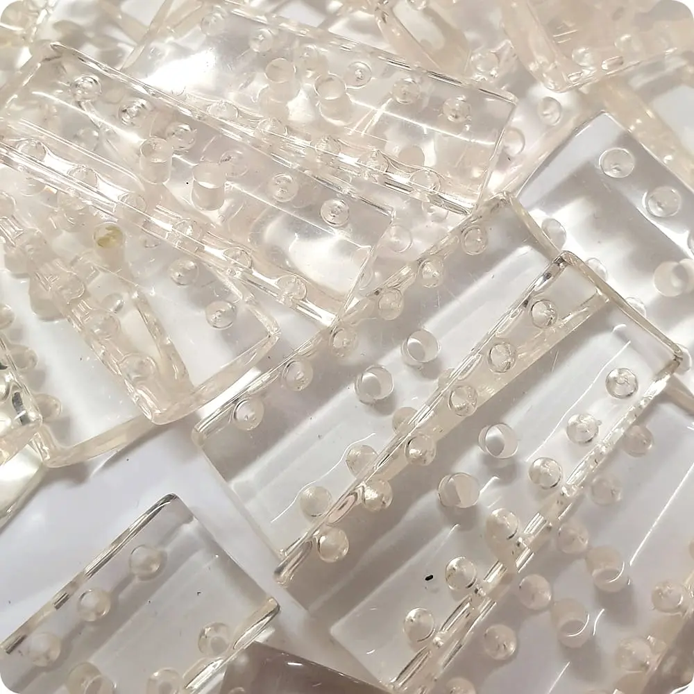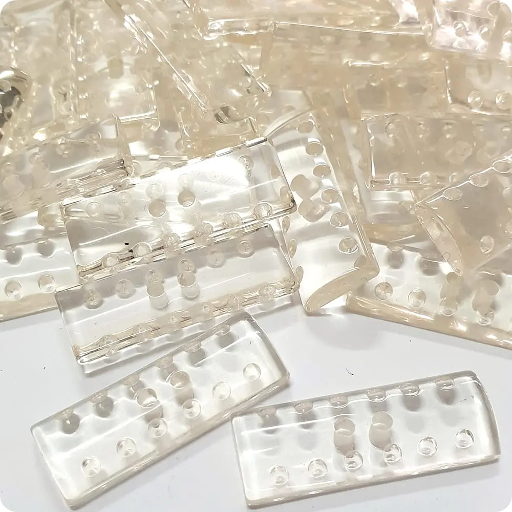 Lekki guzik ozdobny. Nie obciąża materiału. Guzik akrylowy przezroczysty.