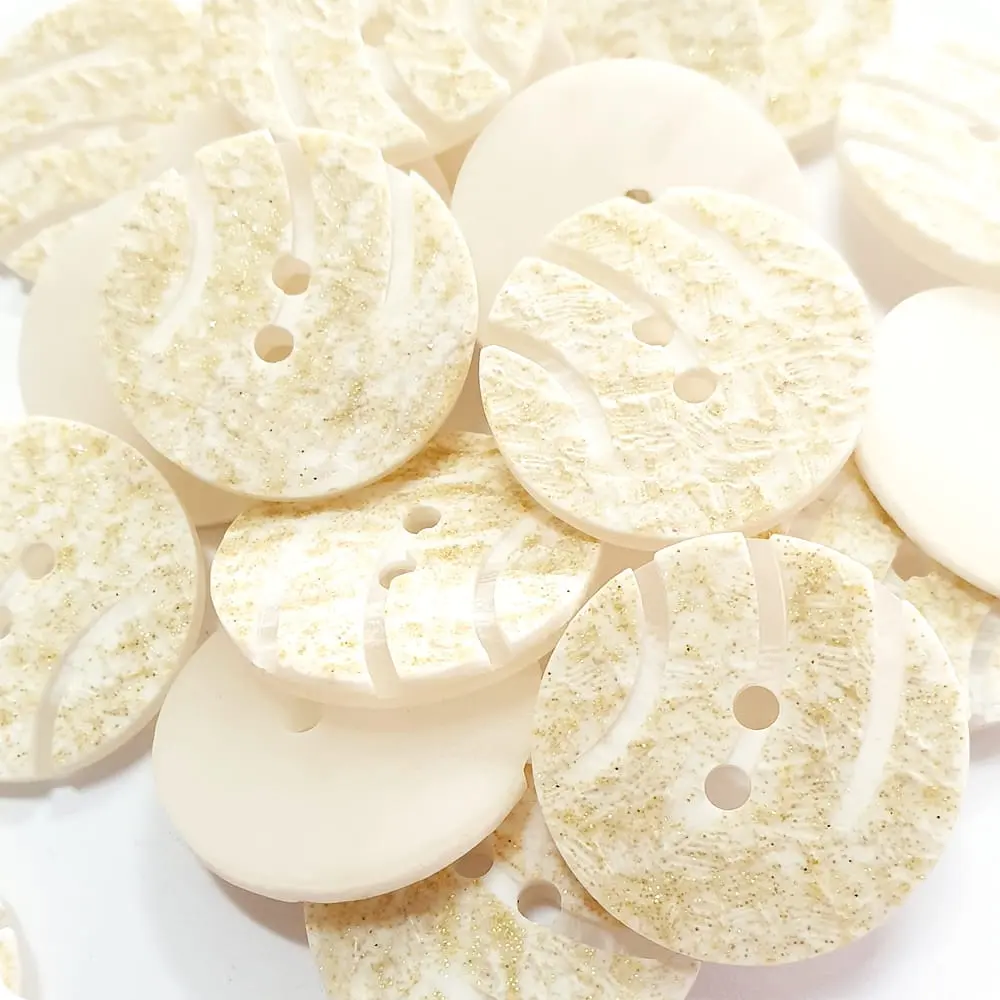 Lekki guzik ozdobny, nie obciąża materiału. Guzik w kolorze ecru.