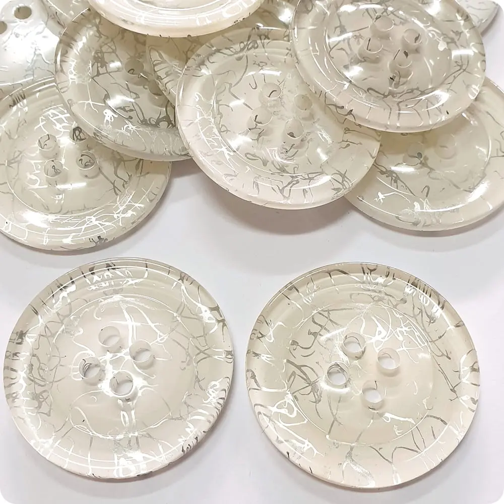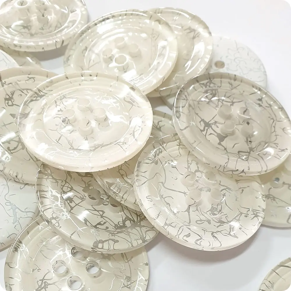 Lekki guzik ozdobny. Nie obciąża materiału. Guzik w biało srebrną mozaikę.