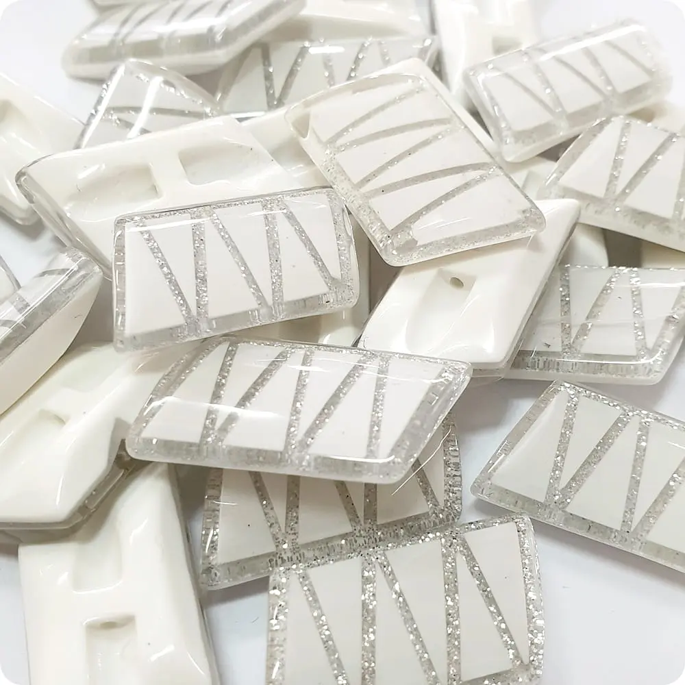 Lekki guzik ozdobny z biało–brokatową mozaiką.