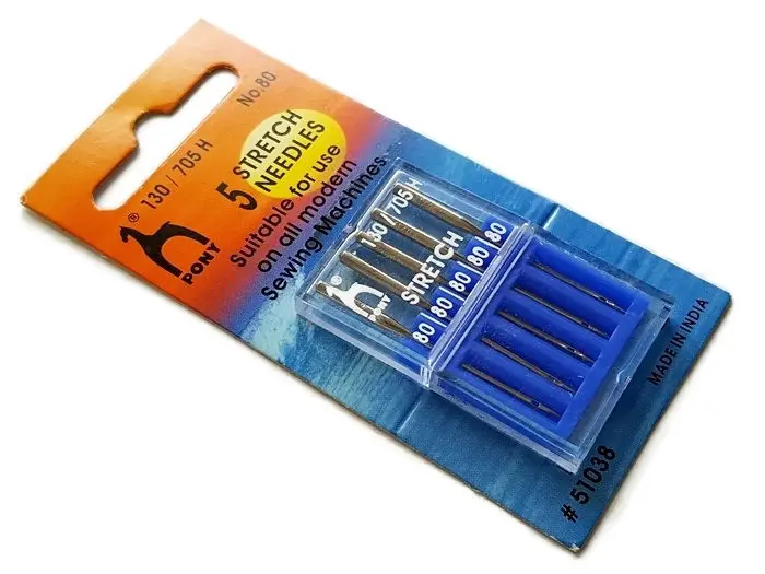 Igły maszynowe półpłaskie do szycia stretchu producenta „PONY”.