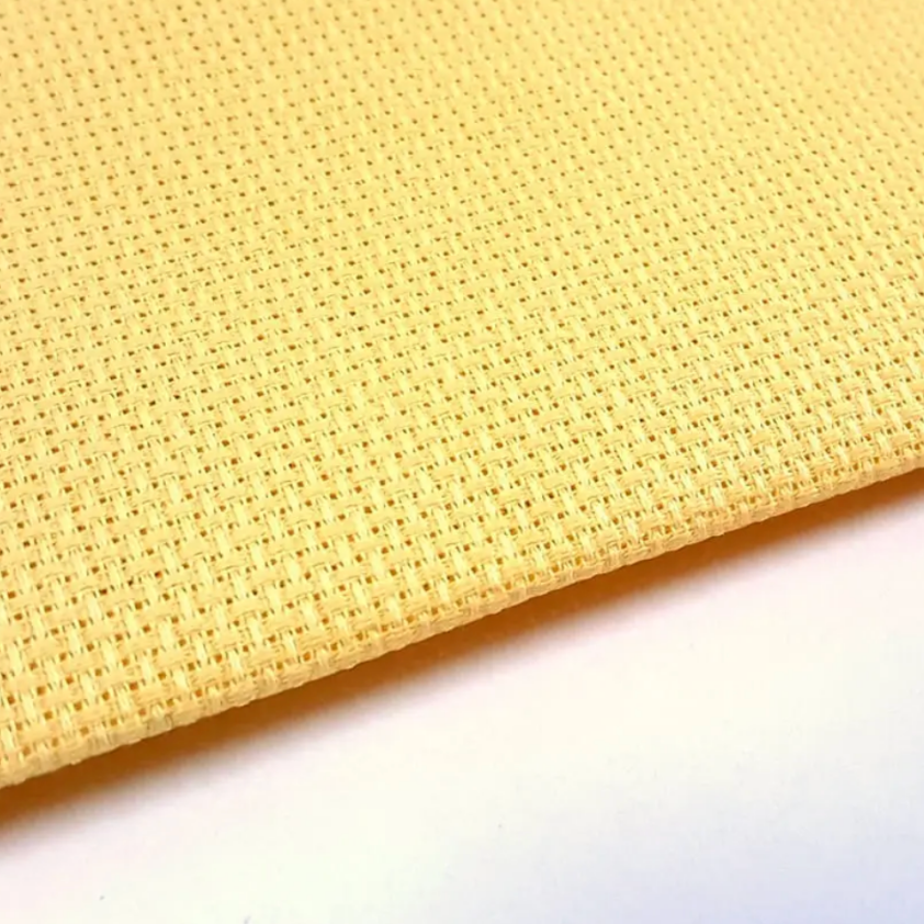 Kanwa tkanina do haftu (14 ct) 54 oczka/10 cm żółta to wysokiej jakości materiał do haftu krzyżykowego i haftu liczonego, idealny do projektów wymagających czytelnego splotu i jasnego, radosnego tła. Regularna struktura 14 ct zapewnia wygodne liczenie oczek i komfort pracy, a intensywny żółty kolor nadaje haftom lekkości i dekoracyjnego charakteru.