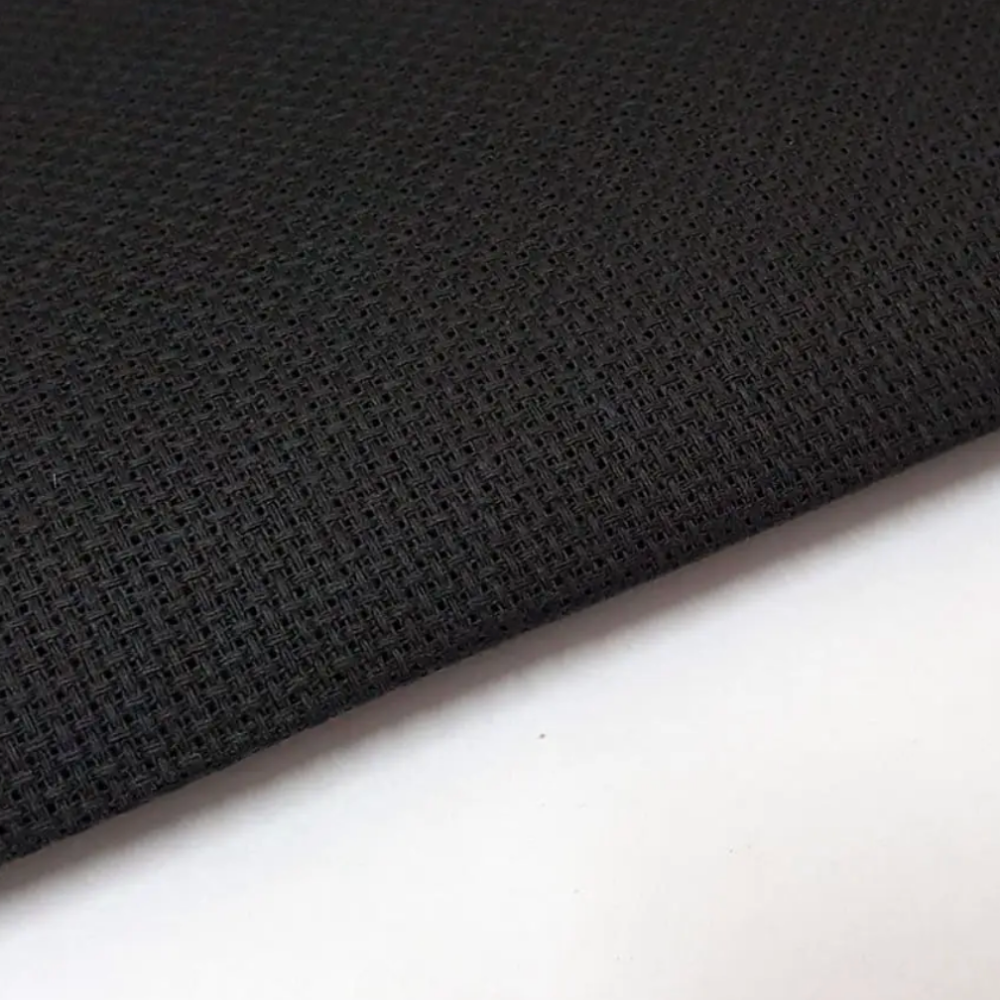 Kanwa tkanina do haftu (14 ct) 54 oczka/10 cm czarna to bardzo drobna i wysokiej jakości tkanina przeznaczona do precyzyjnego haftu liczonego oraz haftu artystycznego. Gęsty, regularny splot pozwala na wykonywanie niezwykle szczegółowych wzorów, a głęboka czerń stanowi wyraziste, eleganckie tło dla jasnych i kontrastowych nici.