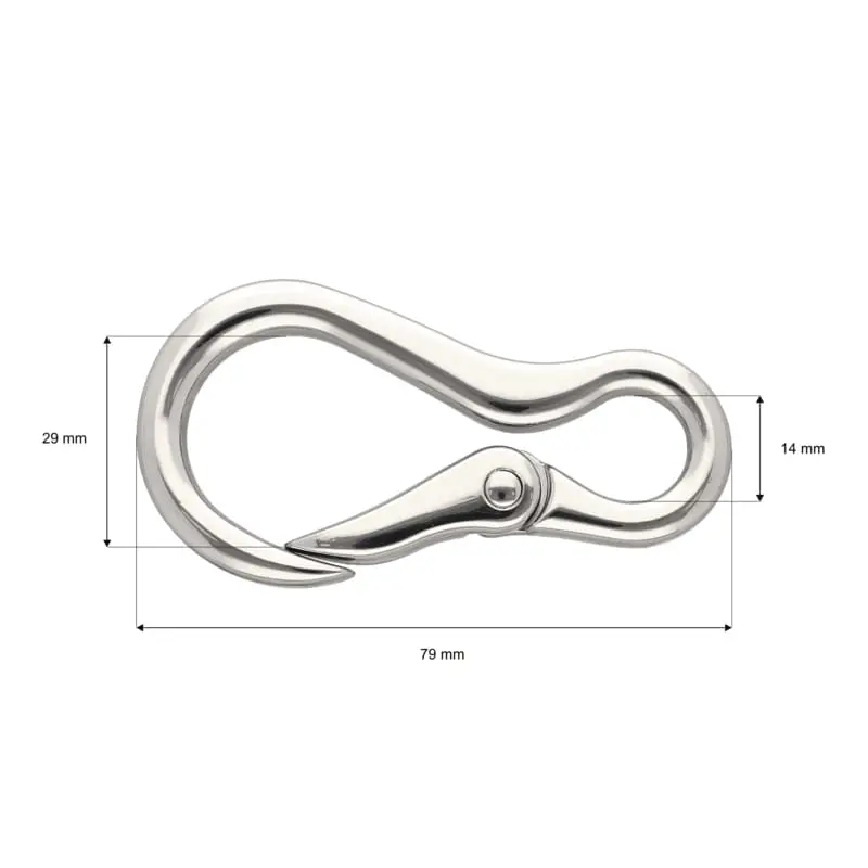 Karabińczyk metalowy 14×79 mm SREBRNY doskonale komponuje się z różnymi materiałami i stylami.