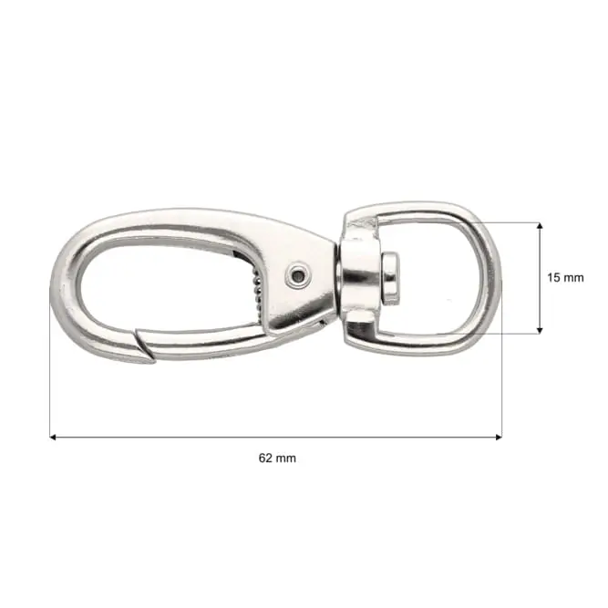 Karabińczyk metalowy 15×62 mm SREBRNY to niezawodny element mocujący do różnych zastosowań