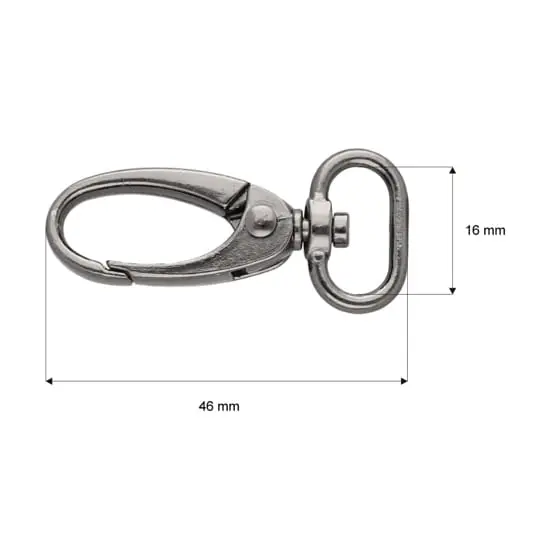 Karabińczyk metalowy 16x46mm CZARNY NIKIEL