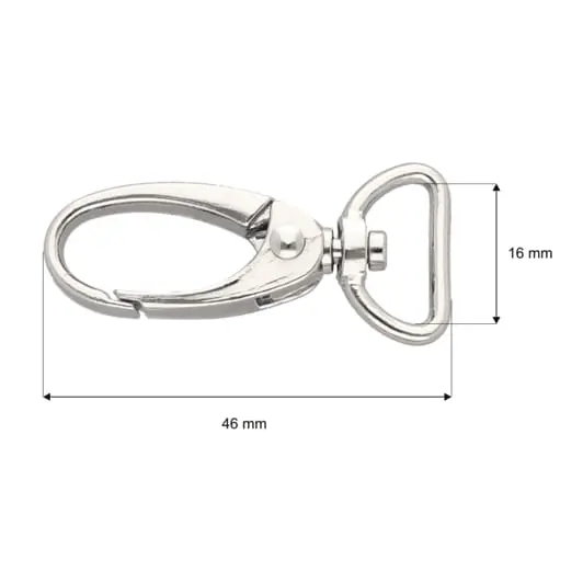 Karabińczyk metalowy 16x46mm SREBRNY to idealny wybór dla każdego, kto potrzebuje mocnego i estetycznego zapięcia