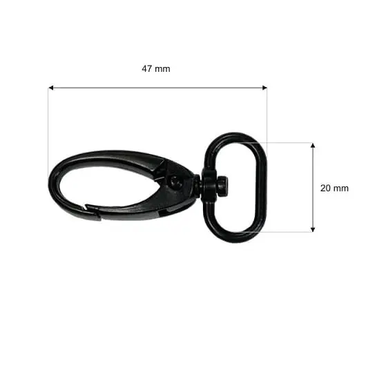 Karabińczyk metalowy 20x47mm CZARNY MAT to idealne rozwiązanie dla osób poszukujących solidnych akcesoriów do biżuterii, torb czy odzieży