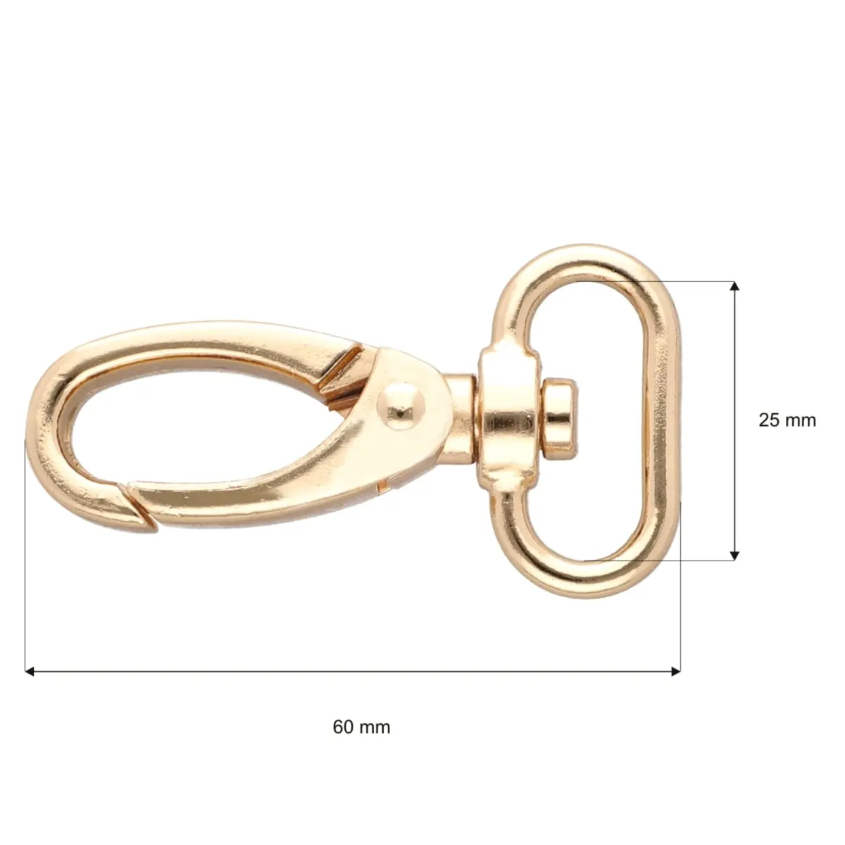 Karabińczyk metalowy 25x60mm ZŁOTY dodaje prestiżu i klasy każdemu zastosowaniu, w którym jest używany