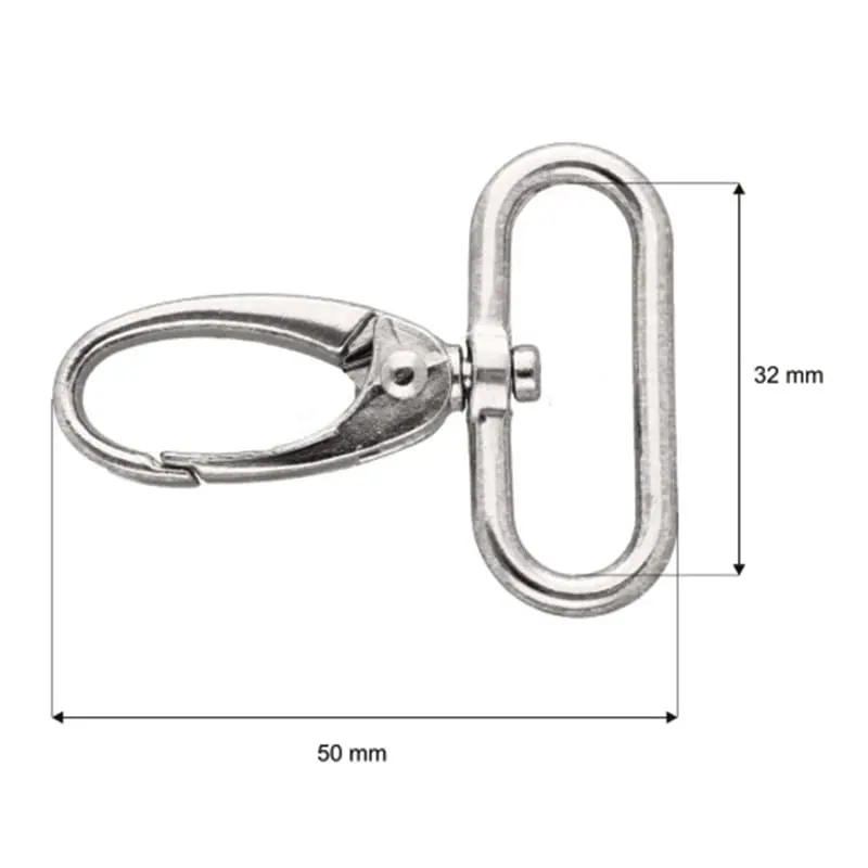 Karabińczyk metalowy 32x50mm SREBRNY to solidny element mocujący do różnych zastosowań
