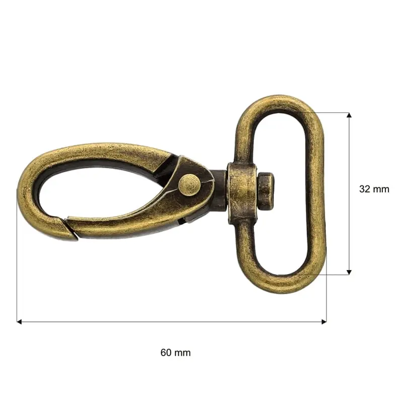 Karabińczyk metalowy 32x60mm STARE ZŁOTO – niezawodny element do różnorodnych zastosowań