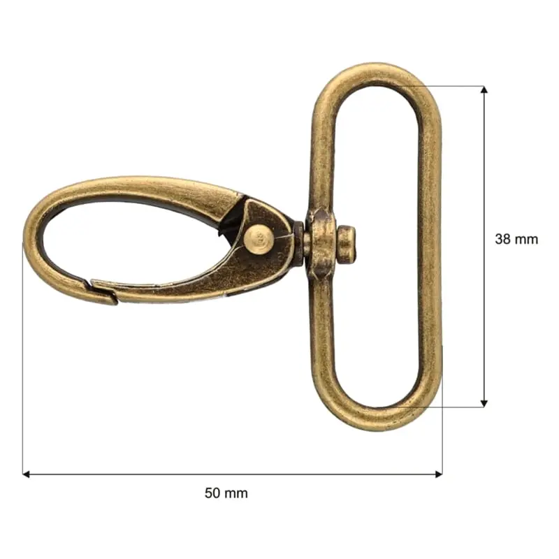 Karabińczyk metalowy 38x50mm STARE ZŁOTO – funkcjonalność i styl w jednym