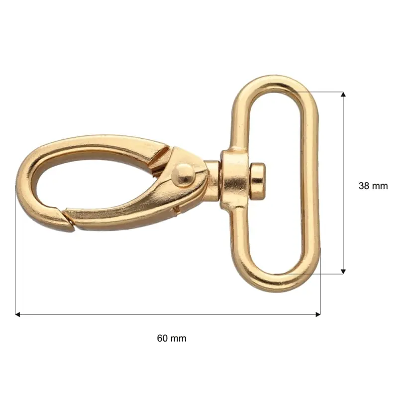 Karabińczyk metalowy 38x60mm ZŁOTY to produkt, który łączy w sobie trwałość, estetykę i funkcjonalność