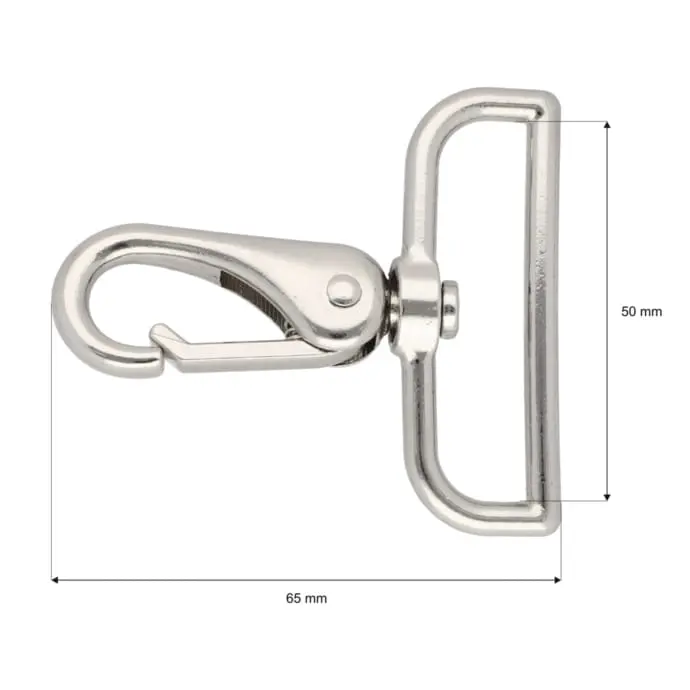 Karabińczyk metalowy 50x65mm SREBRNY