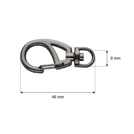 Karabińczyk metalowy 9x46mm CZARNY NIKIEL to niezawodne rozwiązanie dla osób poszukujących mocnych i trwałych elementów do różnych zastosowań. Ten masywny, obrotowy karabińczyk wyróżnia się wysoką jakością wykonania i eleganckim wykończeniem w kolorze czarny nikiel, co sprawia, że doskonale komponuje się zarówno z codzienną galanterią, jak i akcesoriami reklamowymi.
