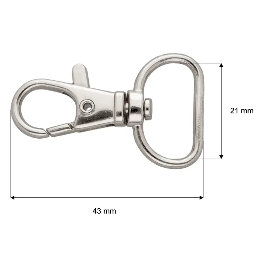 Karabińczyk metalowy SREBRNY rybka 20mm to produkt, który wyróżnia się solidnym wykonaniem i estetycznym wykończeniem. Wykonany z wysokiej jakości metalu pokrytego powłoką niklową, gwarantuje odporność na korozję i długotrwałe użytkowanie. Obrotowa konstrukcja pozwala na swobodne obracanie się elementu, co ułatwia mocowanie i użytkowanie w różnych sytuacjach. Szerokość karabińczyka, 20 mm, jest idealna do pasowania na taśmy o tej samej szerokości, co czyni go uniwersalnym akcesorium do różnych zastosowań. Wysokość 40 mm zapewnia odpowiednią wytrzymałość i funkcjonalność, a jednocześnie jest na tyle kompaktowa, by nie przeszkadzać podczas noszenia czy montażu. Karabińczyk ten sprawdzi się jako element zamykający w biżuterii, mocujący w odzieży, czy też jako część wyposażenia turystycznego. Jego srebrny kolor dodaje elegancji i uniwersalności, pasując do różnych stylów i materiałów. Dzięki zastosowaniu wysokiej jakości powłoki niklowej, produkt jest odporny na ścieranie i czynniki atmosferyczne, co czyni go idealnym wyborem na dłuższy czas użytkowania.