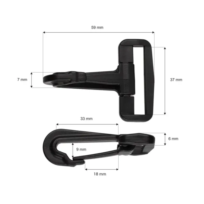 Strona główna » Pasmanteria on-line » GALANTERIA PLASTIKOWA » Karabińczyki plastikowe » Karabińczyk plastikowy 37x59mm (9)