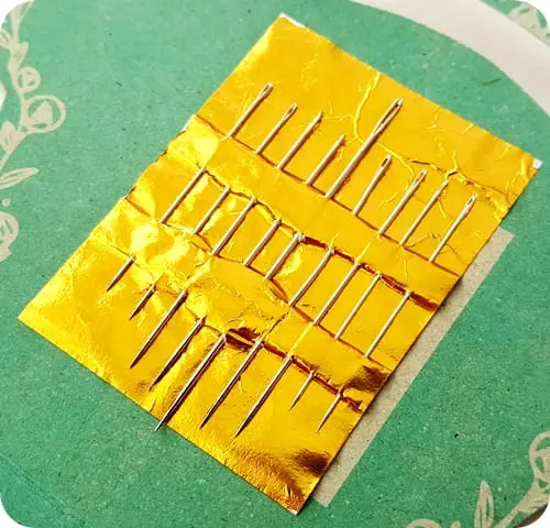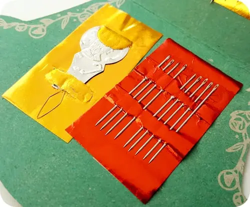 Karnet igieł z nawlekaczem.
