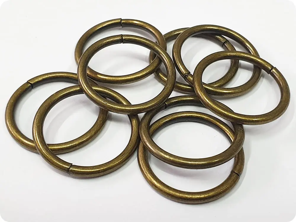 Metalowe kółka. Stosowane są zarówno w przemyśle odzieżowym, jak i kaletnictwie.
