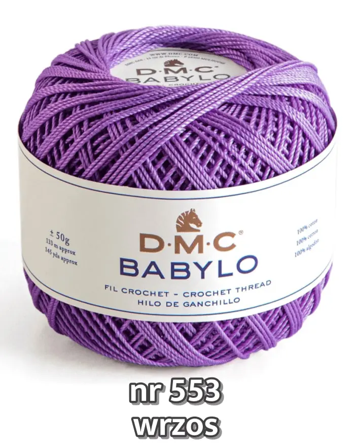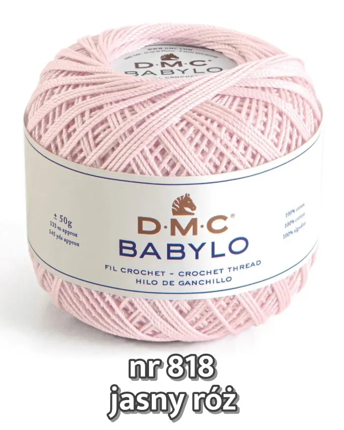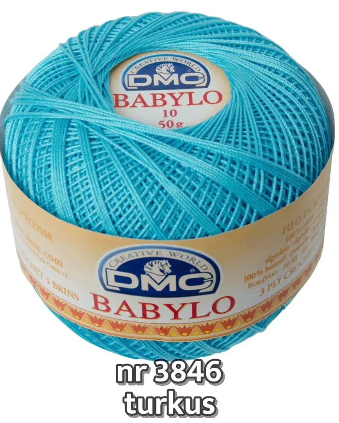Najwyższej jakości kordonek DMC Babylo, jest wytrzymały i bardzo miękki. Przyjemny w dotyku, o delikatnym połysku. Idealny do obrusów, serwetek, firanek, frywolitek i ozdób.