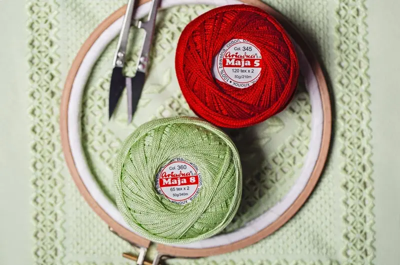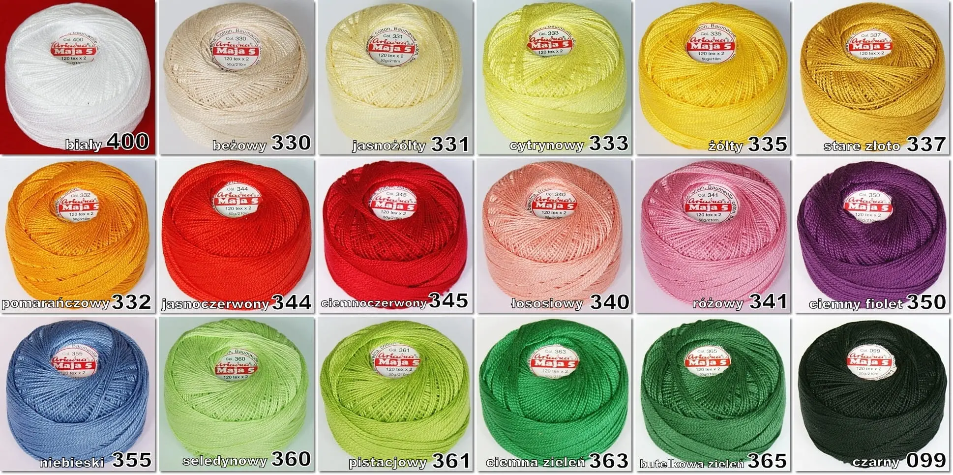 Wykonany z długowłóknistej bawełny czesanej, opalany i podwójnie merceryzowany kordonek MAJA to kordonek perłowy o wyjątkowym połysku. Charakteryzuje go wyjątkowa gładkość, a jego miękkość sprawia, że jest niezwykle przyjemny w dotyku. Wykonane nim ściegi zyskują perłowy blask i przyjemną dla oka wypukłość. Polecamy go przede wszystkim do haftu hardanger i mereżki ale doskonale sprawdza się również w innych technikach, jak: szydełko, frywolitka, druty.