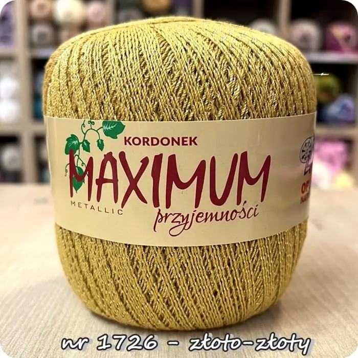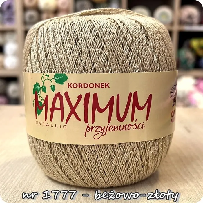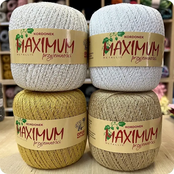 Kordonek Maximum metalizowany to połączenie egipskiej bawełny merceryzowanej i metalizowanej nitki. Delikatny, miękki, doskonały na szydełko.