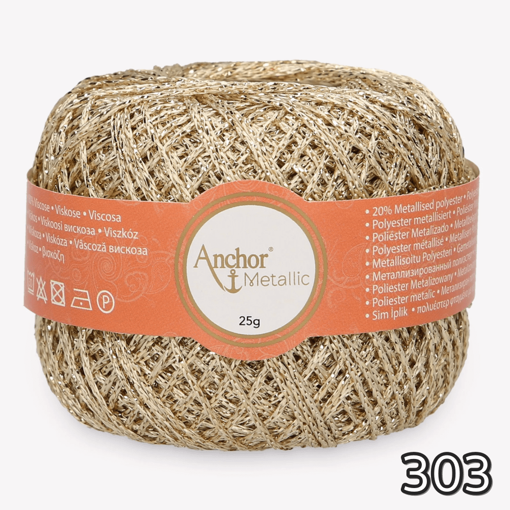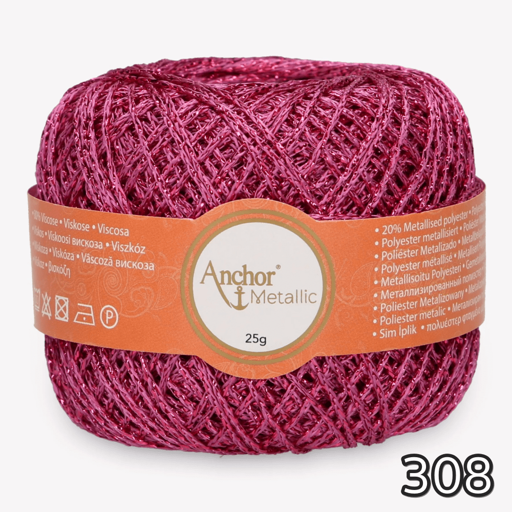 Kordonek metalizowany Anchor Metallic łączy subtelny połysk z wyjątkową wytrzymałością, dzięki czemu sprawdza się zarówno w delikatnych haftach, jak i w dekoracyjnych elementach szydełkowych. Dostępny w wielu odcieniach złota, srebra czy miedzi, pozwala uzyskać efekt elegancji i blasku w każdej pracy. Doskonale współgra z innymi nićmi, podkreślając ich kolor i strukturę.