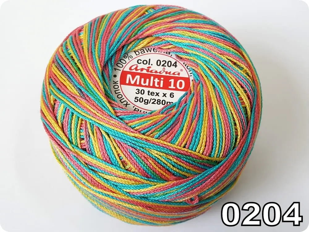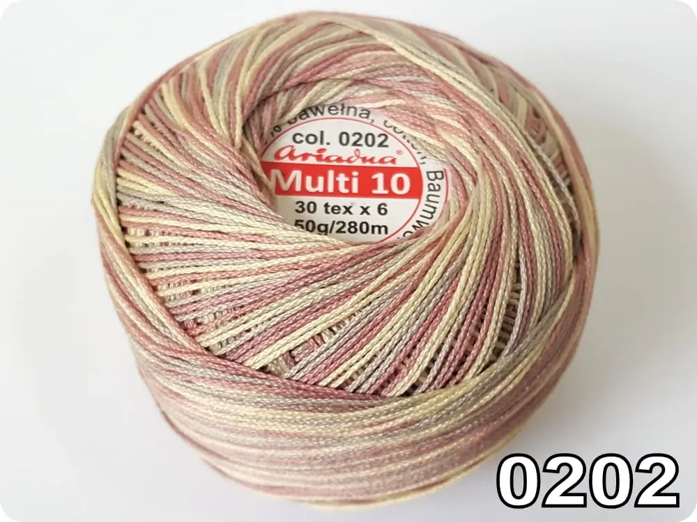 Kordonek Multi 10 jest wykonany z podwójnie merceryzowanej 100% bawełny. Połączenie trzech kolorów w jednej nici to nowe możliwości i nietuzinkowy efekt.