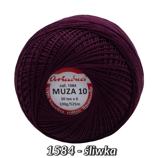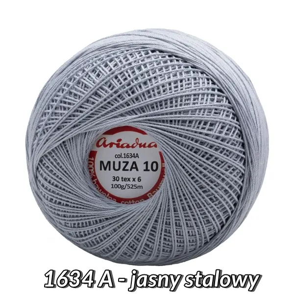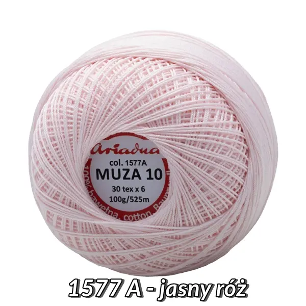 Kordonek Muza 10 to wysokiej jakości produkt firmy Ariadna – najpopularniejszego polskiego producenta pasmanterii. Wykonany ze 100 % merceryzowanej bawełny jest idealny do wielu projektów rękodzielniczych. Każdy 100-gramowy motek to 525 metrów gładkich, dobrze skręconych nici. Nie plączą się i nie są bardzo sztywne czy też zbyt miękkie, tak więc stanowią idealny wybór dla wymagających rękodzielników. Nici są odporne na ścieranie, nie mechacą się, a także są bardzo wytrzymałe.