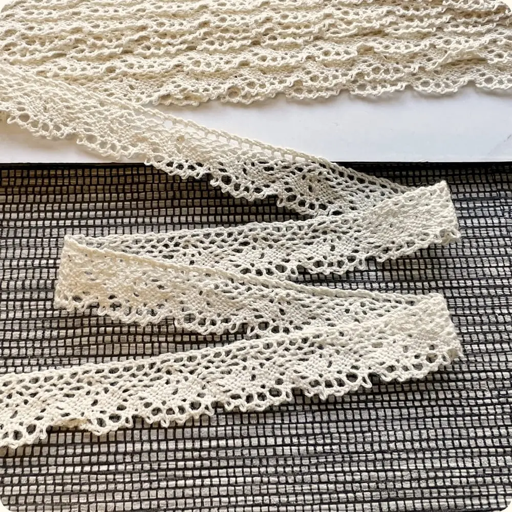 Koronka poliestrowa swoim wyglądem i strukturą przypomina koronkę bawełnianą. Jest mięsista i ma wyraźny wzór.