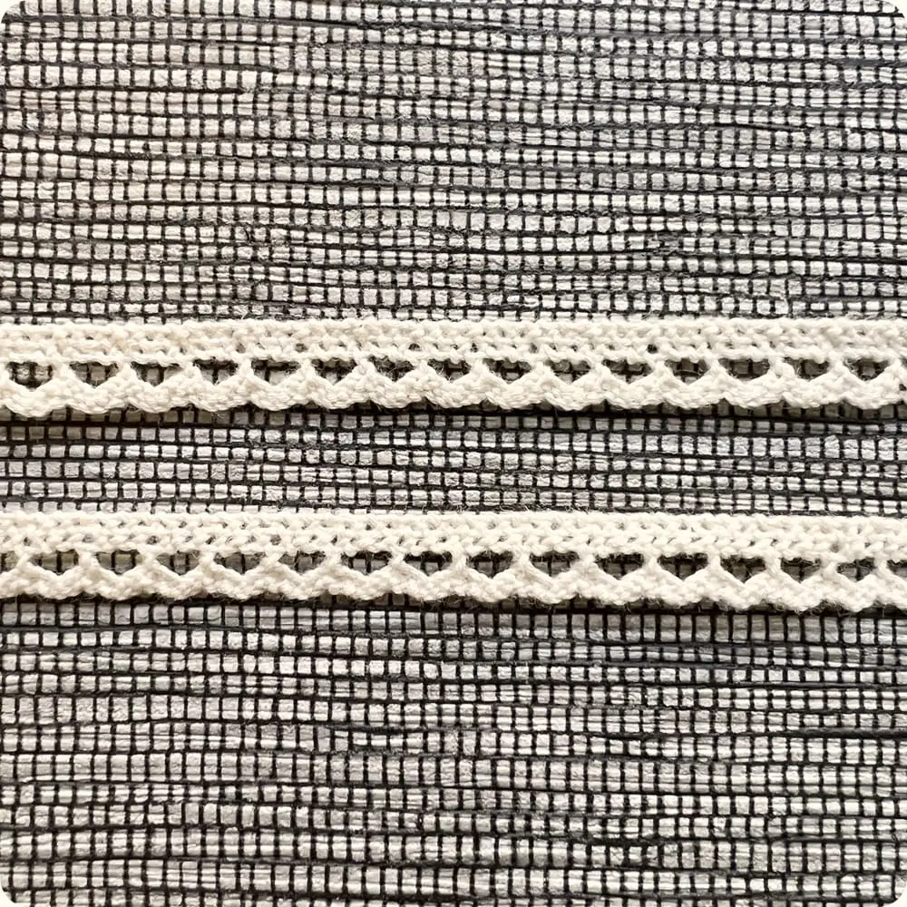 Koronka poliestrowa swoim wyglądem i strukturą przypomina koronkę bawełnianą. Jest mięsista i ma wyraźny wzór.