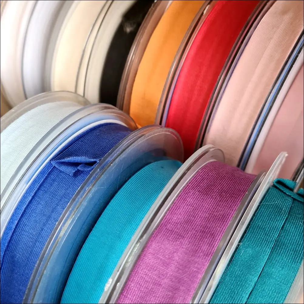Zaprasowana lamówka dzianinowa, elastyczna, idealna do tkanin typu jersey. Idealnie nadaje się do wykańczania brzegów. Dostępna w kilkudziesięciu kolorach.