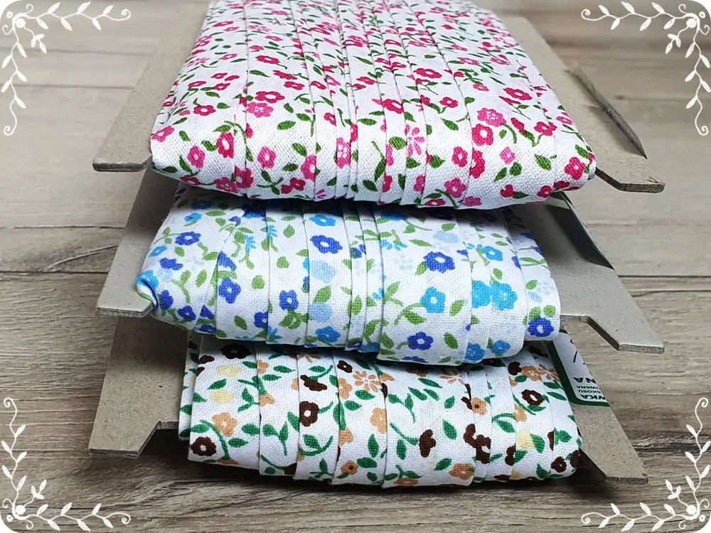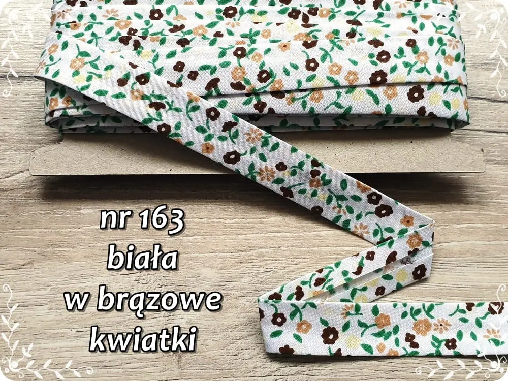 Ozdobna bawełniana lamówka zaprasowana na szerokość 18 mm. Idealnie nada się jako ciekawy dodatek do tkaniny. Stosowana w krawiectwie do obszywania odzieży, poduszek, kocyków i wielu innych.