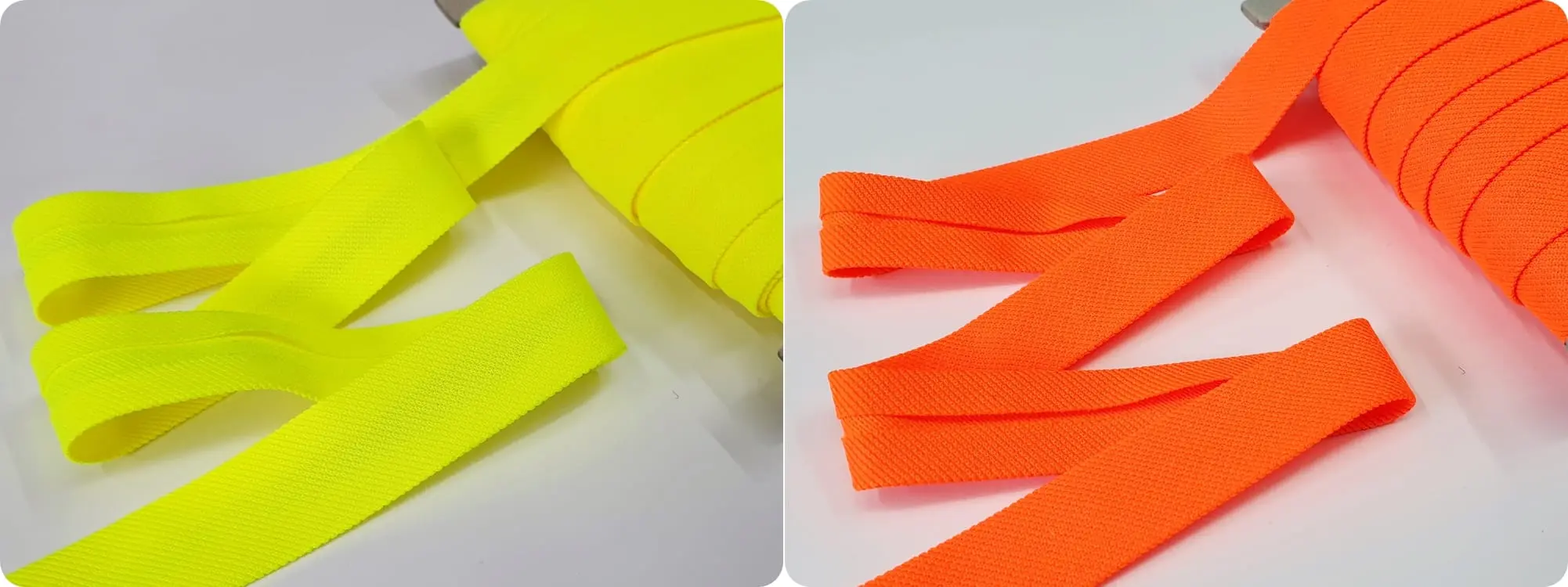 Lamówka w neonowych, dobrze widocznych kolorach. Efektowna, polecana do wykańczania odzieży i tekstyliów.