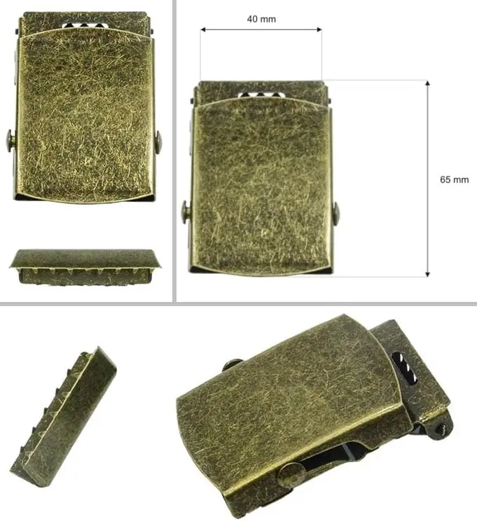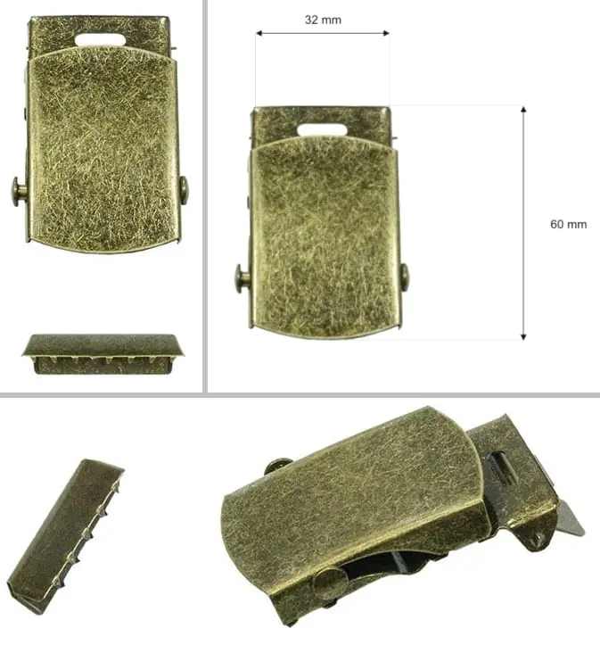 Klamra zaciskowa do paska w powłoce galwanicznej nikiel lub stare złoto.