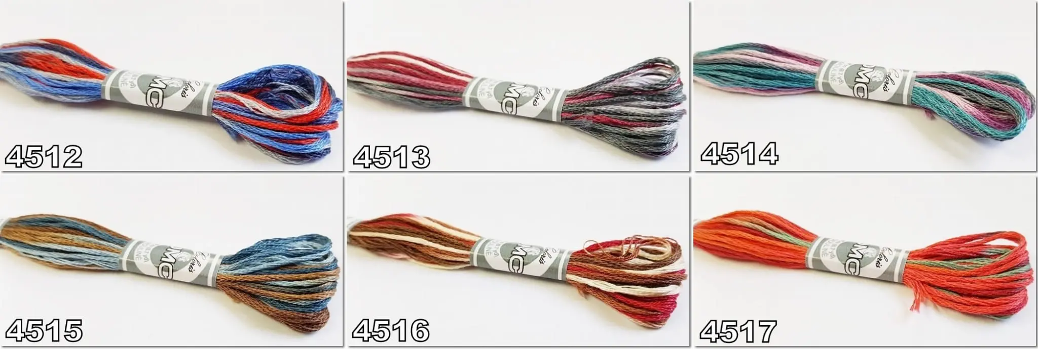 Najwyższej jakości, dwukrotnie merceryzowana bawełna długowłóknista nadaje tej nici wyjątkowego połysku. Każda nitka składa się z 4 kolorów barwionych odcinkowo.