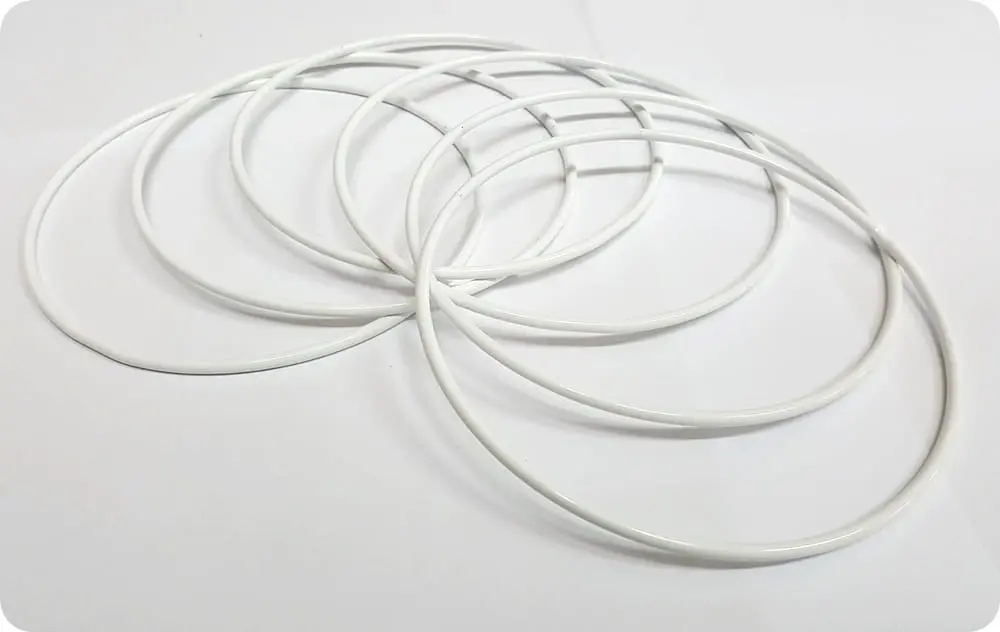 Obręcz metalowa biała jest to produkt wykonany z dobrej jakości drutu. Nadaje się do obrabiania szydełkiem, tworzenia mandali czy pięknych koronkowych serwet w okręgu.