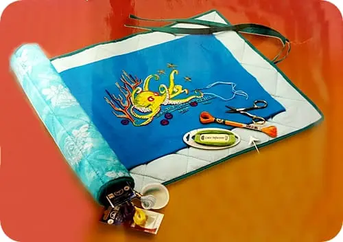 Bardzo dekoracyjny organizer, zwijany w rulon, który pomieści kanwę oraz akcesoria potrzebne do wyszywania.