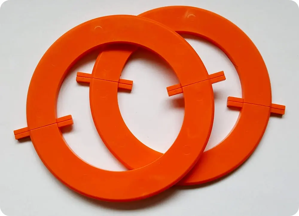 Zestaw ułatwiający wykonywanie pomponów. Składa się z 2 kółek o średnicy 13 cm.