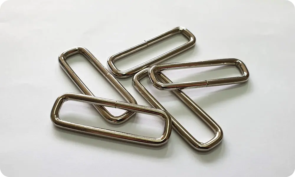 Metalowe ramki. Stosowane są zarówno w przemyśle odzieżowym, jak i kaletnictwie. Używane są do pasków, plecaków, smyczy dla psów, breloczków, karniszy i wielu innych.
